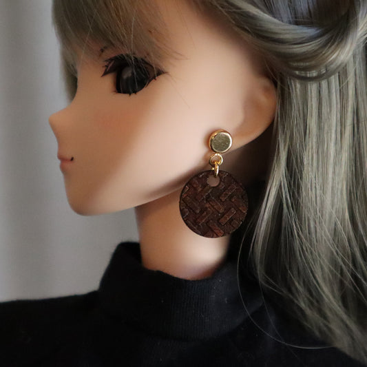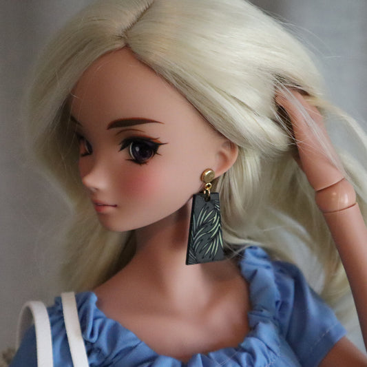Etched Fronds No-Hole Earrings for BJDs - Frosted Silver or Matte Gold