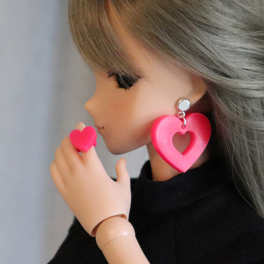 Bold Acrylic Heart No-Hole Earrings and Bonus Ring (Red or Pink)