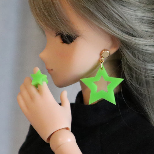 Bold Acrylic Star No-Hole Earrings and Bonus Ring (Green or Teal)