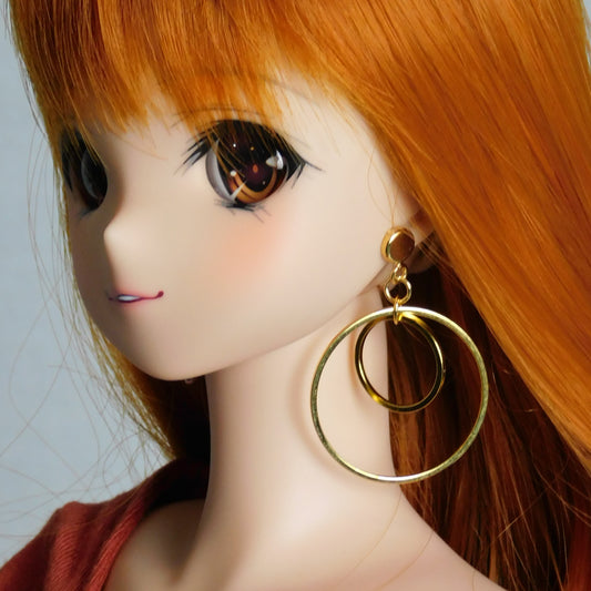 Raindrop Double Hoop (Gold or Silver) No-Hole Earrings for BJD