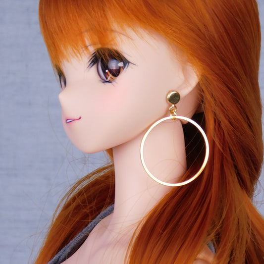 Round Hoops Large (Silver or Gold) No-Hole Earrings for BJD