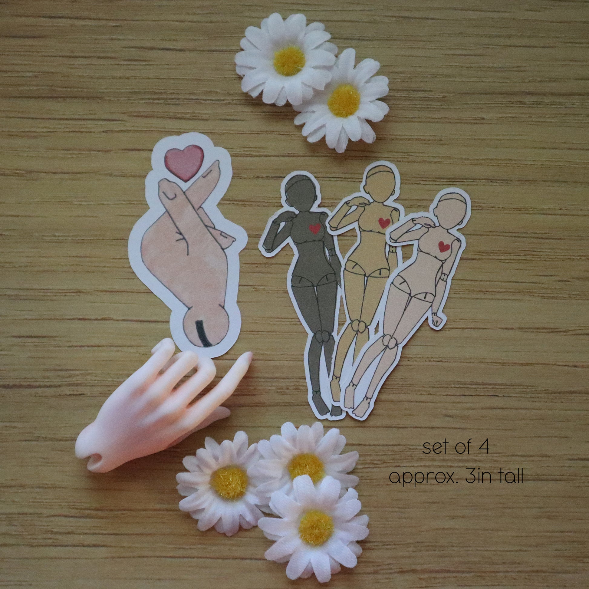 Fun, doll themed pieces. Includes new BJD doll in 3 skintones and kpop bjd hand sticker.