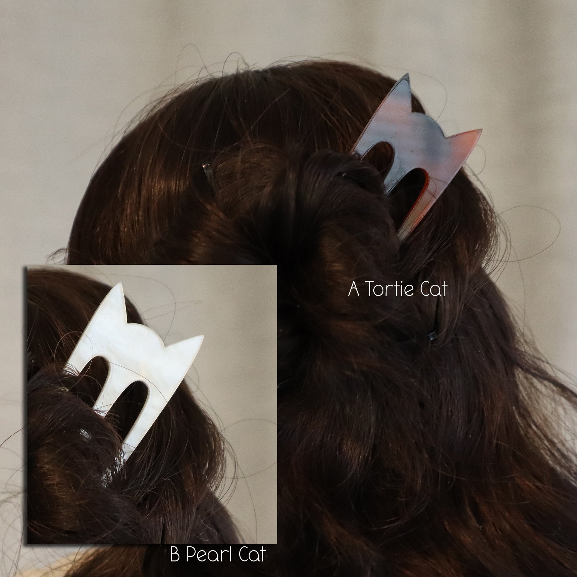 These simple hair comb add a touch of extra to any simple updo or twist. Work in both straight and curly wigs. Gather hair and twist into a simple swirl (a couple bobby pins will help) then tuck the hairpin into the loop.
