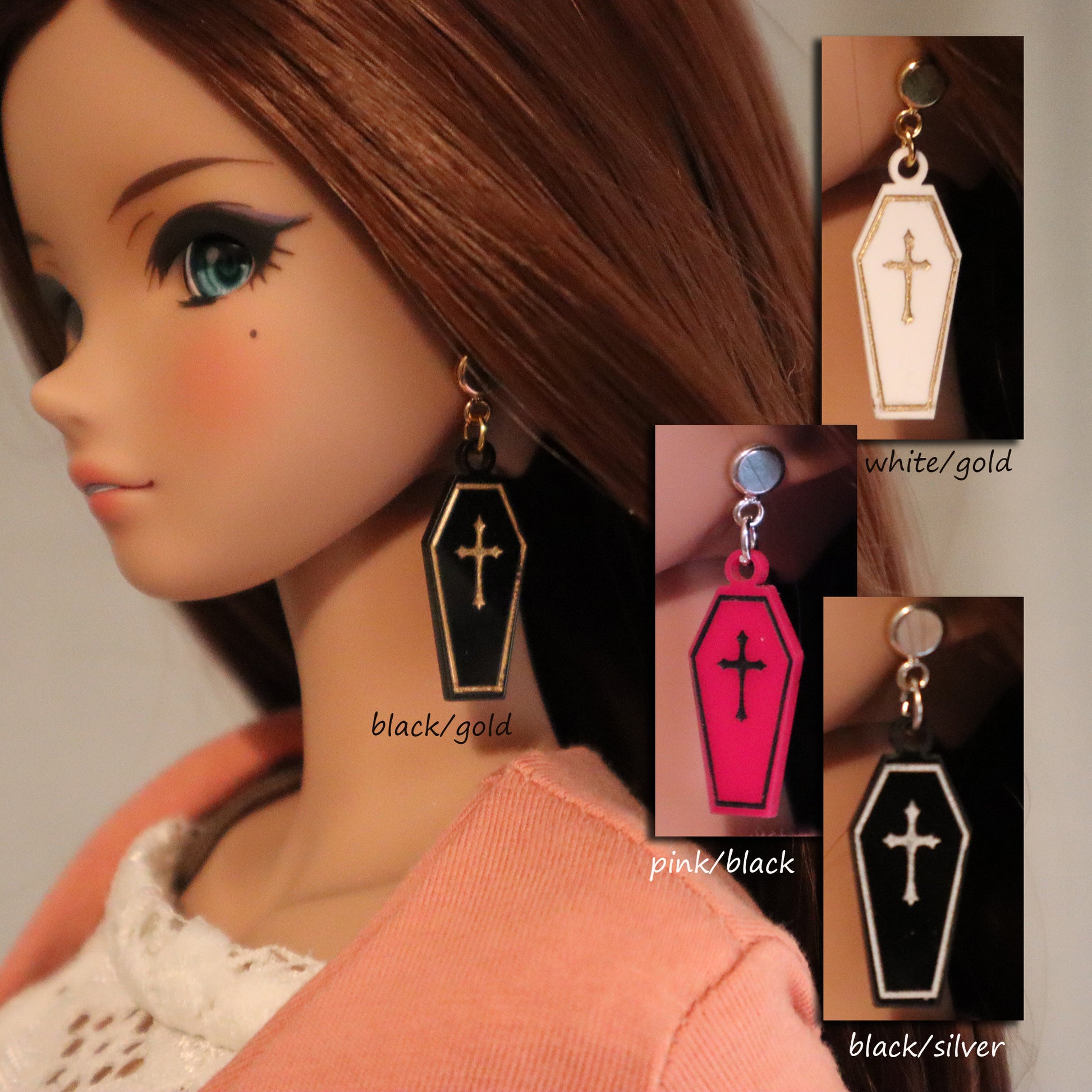 Handpainted Coffin Acrylic No-Hole earrings for vinyl bjds - color choice