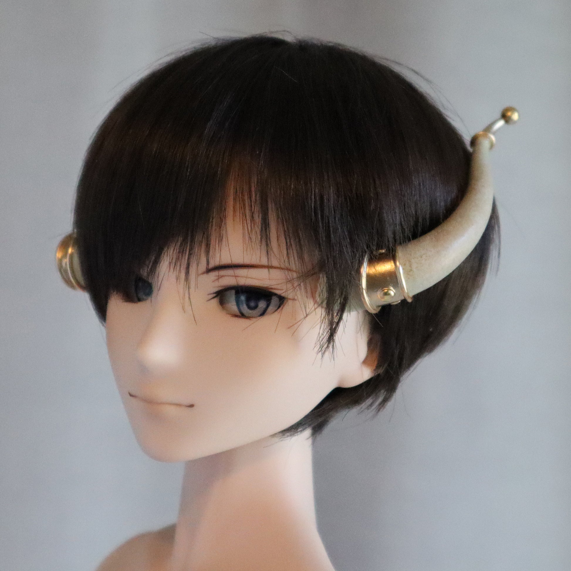 Another classic anime style option - Minotaur horns in Bone finish feature gold caps and bands similar to actual dectorated cattle horns. Can be worn many different ways. If you wish to order the BONE finish, please select 12, BUT BE SURE TO LEAVE A NOTE IN THE ORDER COMMENTS to change to BONE.