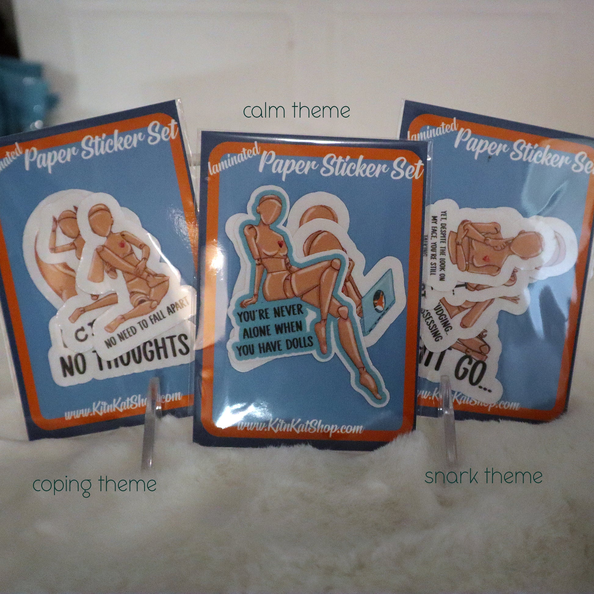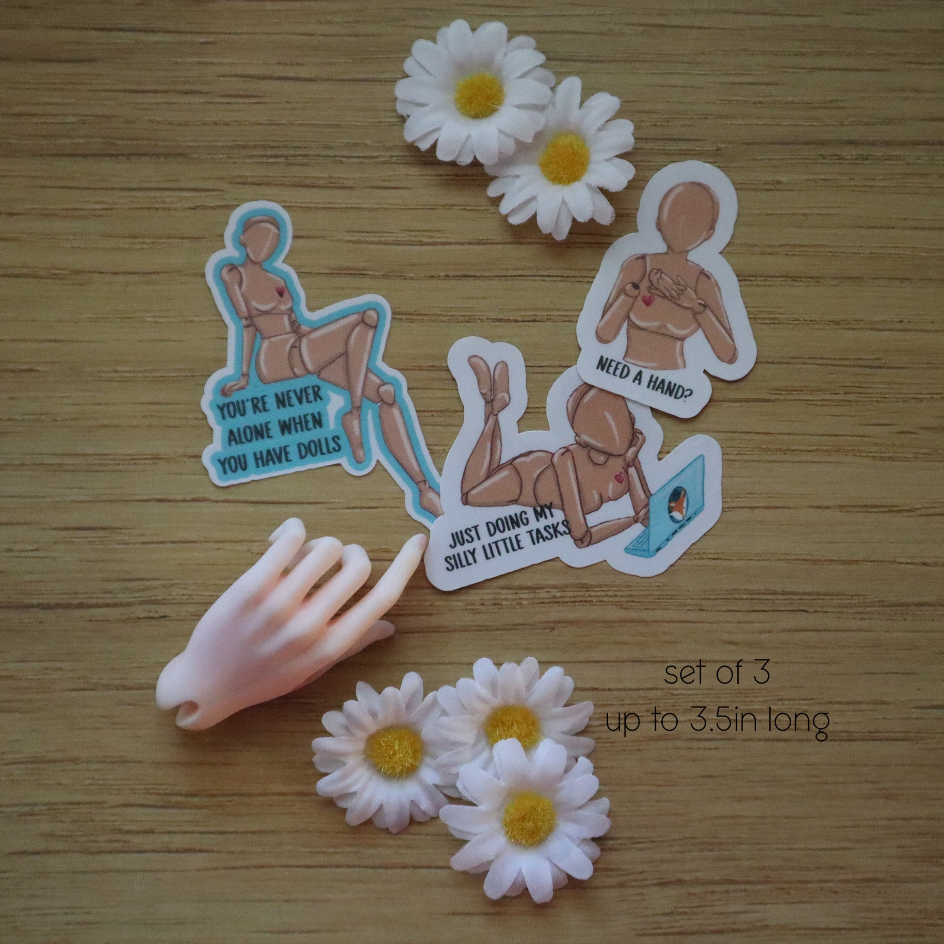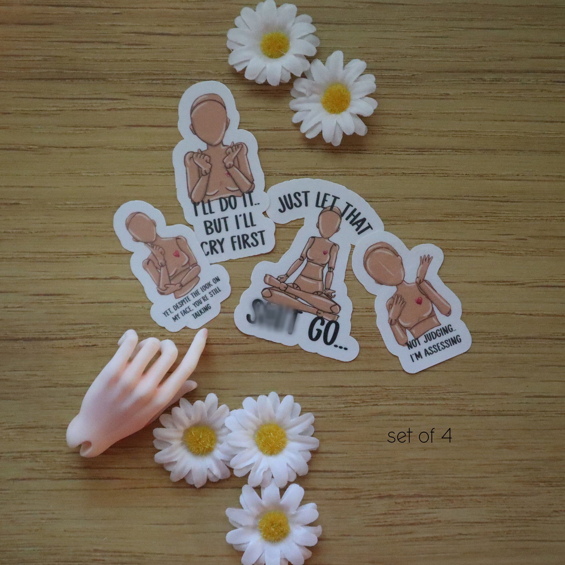 Original hand drawn art by Anna - Meet our mascot, Genny the 2D bjd. These sets allow Genny to express herself - from sweet to not-so-sweet sentiments. Perfect for notebooks, journals or other dry surfaces. These are laminated to protect against an accidental splash but not intended for items that are washed or get saturated.