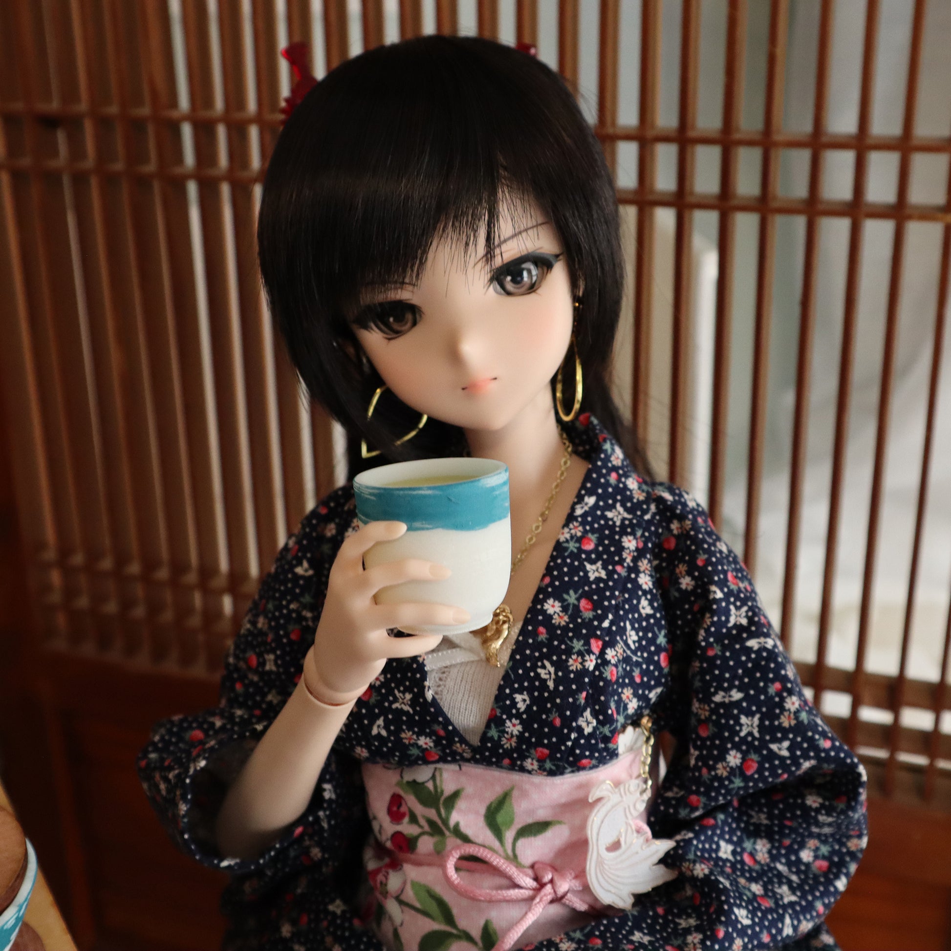 Scaled to work with 1/3 scale bjds and vinyl dolls. Set includes teacup with handpainted details. 2 inserts - green tea or black tea. Wooden lid doubles as a coaster - features a kanji for "zen".